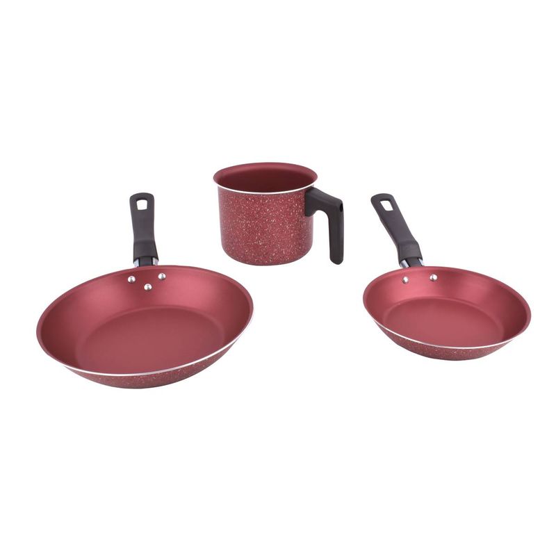 Set completo con antiadherente Starflon Max y fondo granito para cocción pareja y limpieza sencilla. Ideal para equipar la cocina diaria.