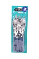Renueva tu mesa con este moderno juego de cubiertos Simonaggio Belize de 16 piezas, con elegantes mangos azules. Fabricados en acero inoxidable de alta calidad, son perfectos para el uso diario y para ocasiones especiales. Combinan resistencia, funcionalidad y un toque de color que complementará tu vajilla, haciendo cada comida más agradable.