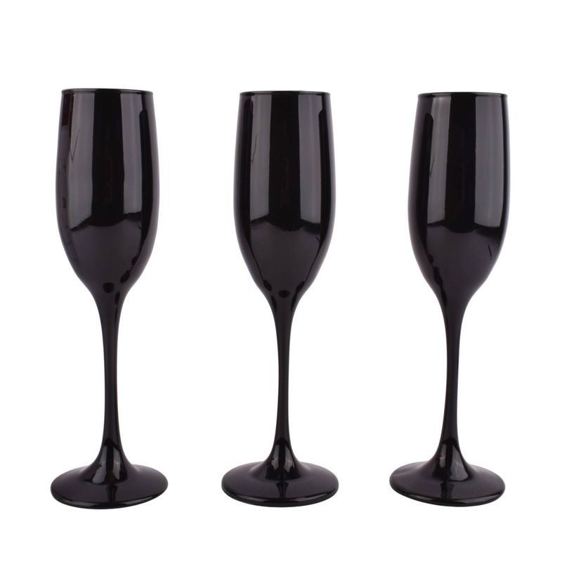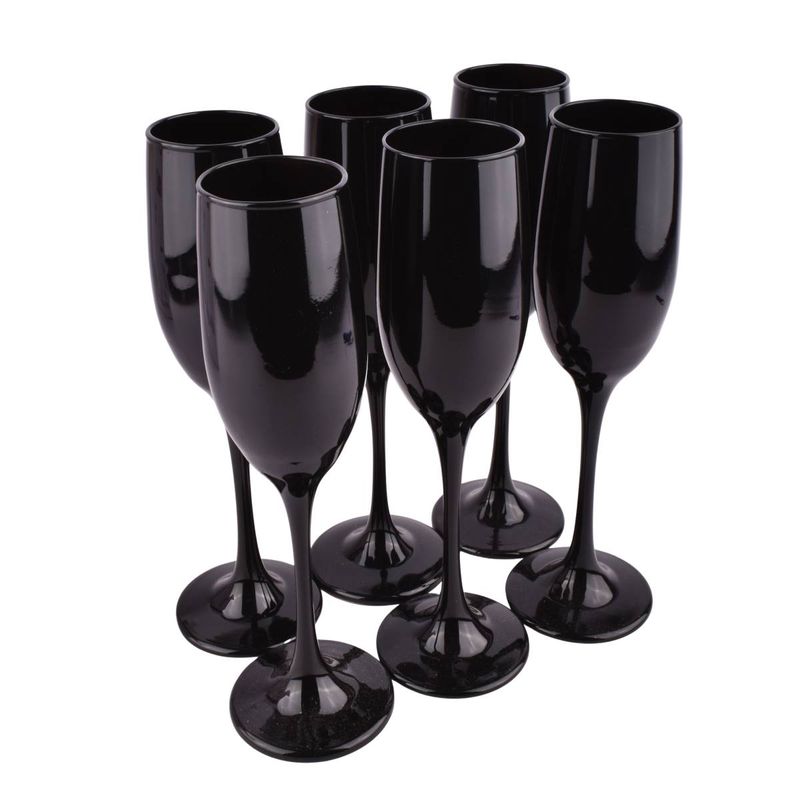 Dale un toque moderno y elegante a tu mesa con este exclusivo set de copas de champagne en vidrio color negro, perfectas para celebraciones especiales, eventos o para brindar con estilo en casa.