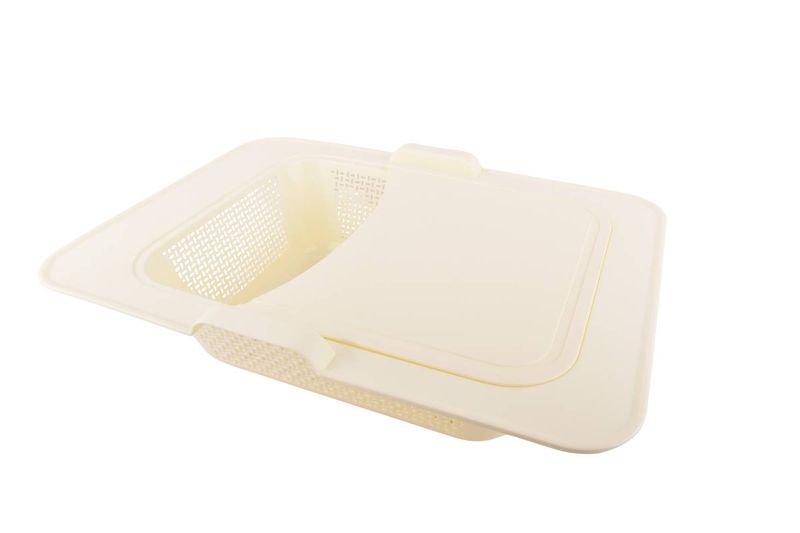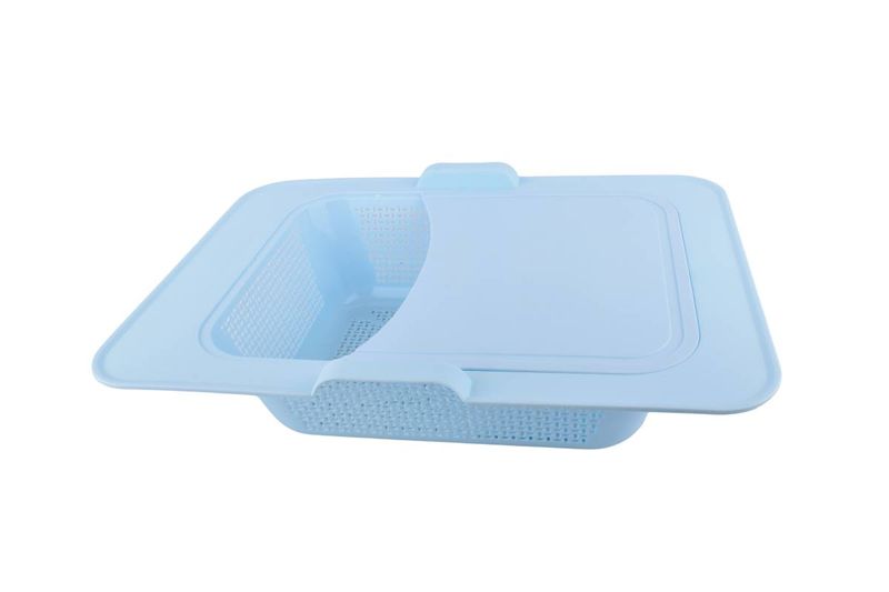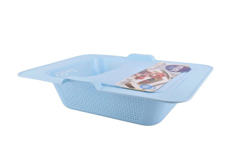 Tabla de picar con colador integrado, práctica y funcional, ideal para picar, lavar y escurrir frutas, verduras y otros alimentos de manera rápida y segura.