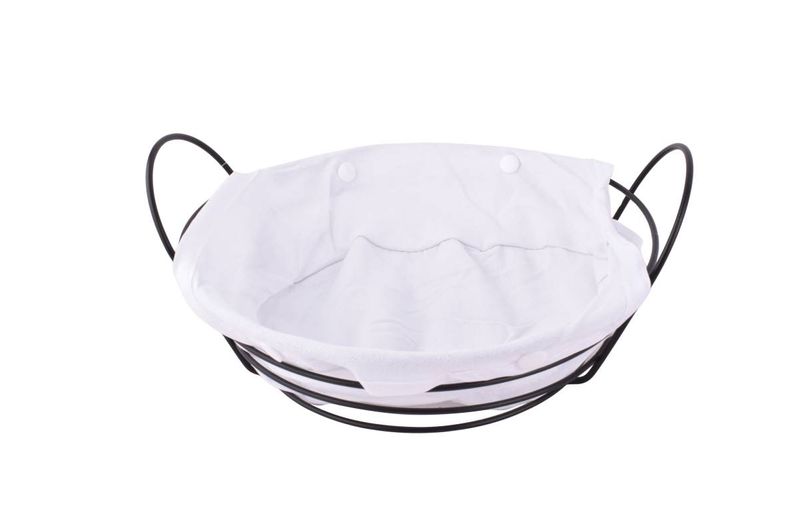 Organiza con estilo usando nuestro canasto redondo de metal negro con forro de tela removible. Ideal para pan, frutas o decoración en cualquier ambiente.