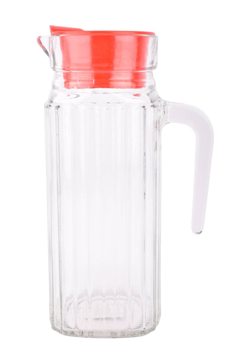 Sirve tus bebidas favoritas con estilo en esta jarra de vidrio, perfecta para agua, jugos o infusiones. Su diseño clásico con relieves y tapa asegura frescura y un vertido fácil, siendo un complemento esencial para tu mesa o refrigerador.