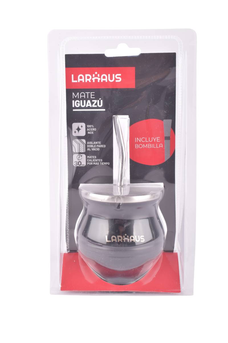 El Mate Igazú de la marca Larhaus combina un diseño elegante en color negro con la durabilidad del acero inoxidable. Su doble pared con aislamiento al vacío mantiene la temperatura ideal de tu mate por más tiempo, mientras que la bombilla incluida te permite disfrutarlo fácilmente en cualquier lugar.