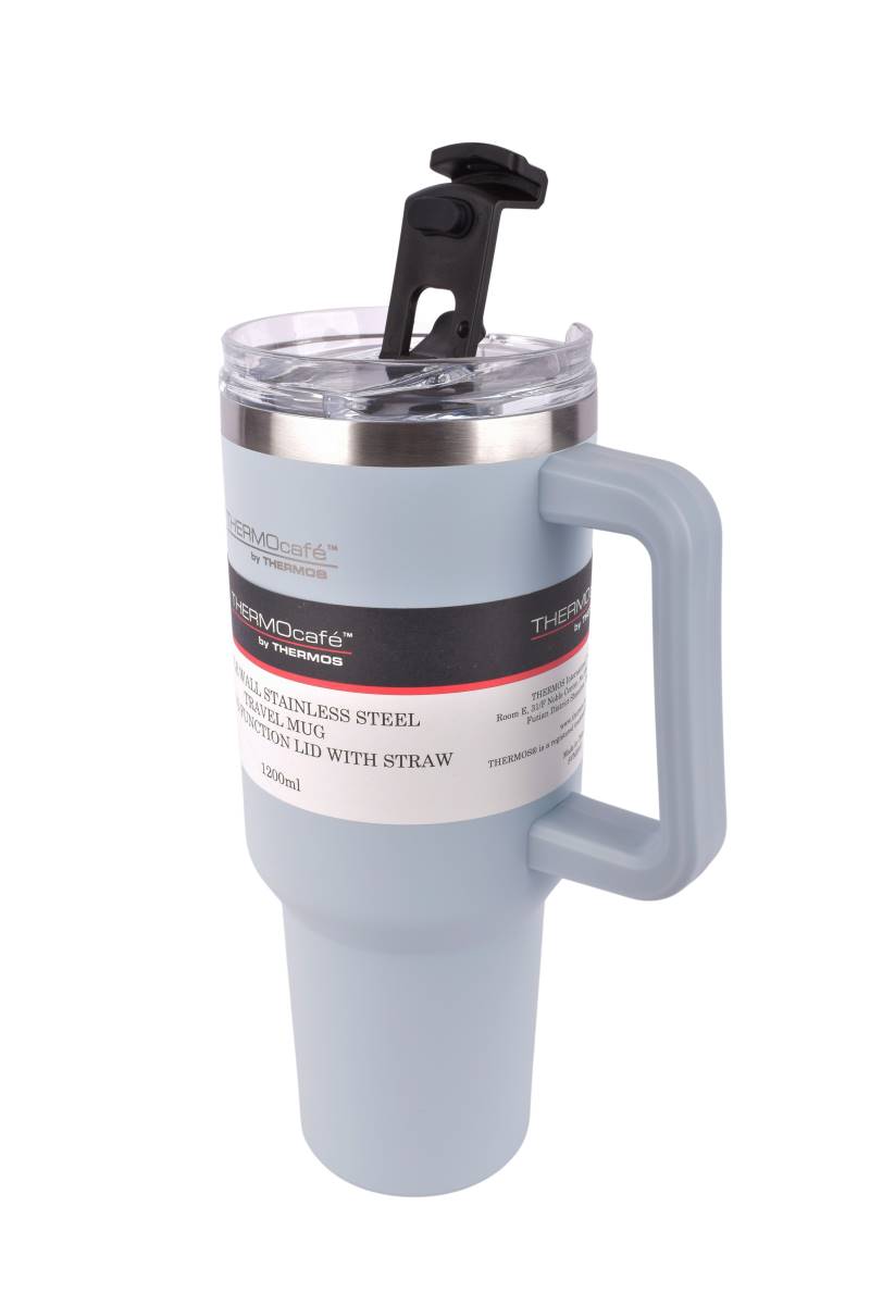 Disfruta de tus bebidas frías o calientes por más tiempo con el vaso térmico Thermocafe de Thermos. Fabricado en acero inoxidable de doble pared, ofrece un excelente aislamiento térmico. Su tapa antiderrame asegura que puedas llevarlo contigo sin preocupaciones. Con una capacidad de 1200 ml, es ideal para mantenerte hidratado durante todo el día.
