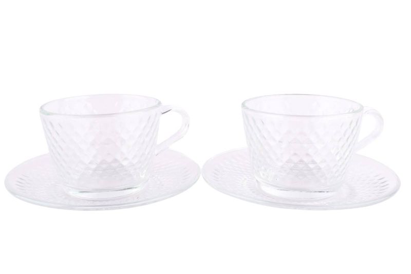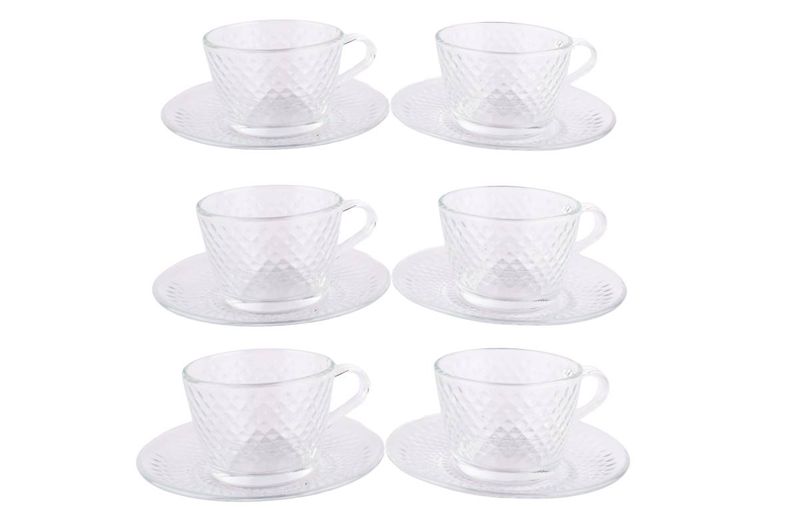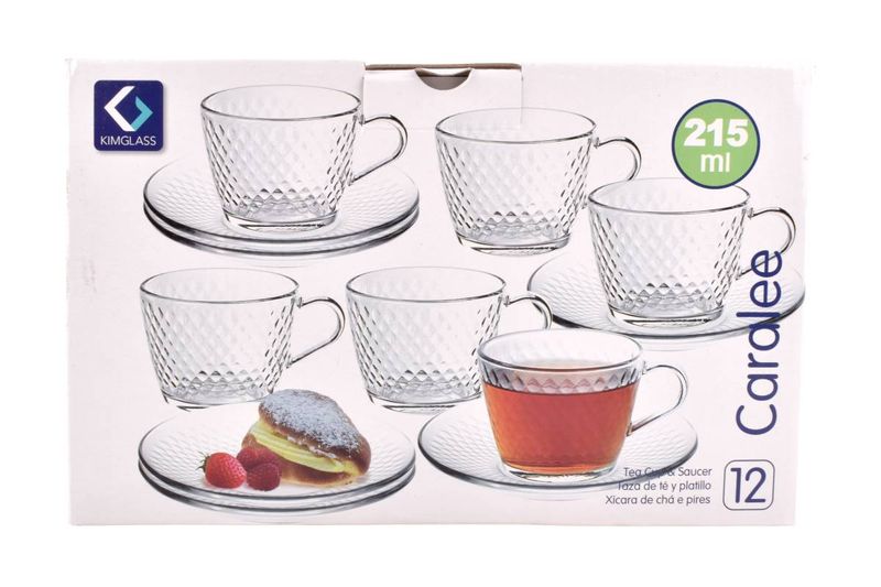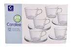 Set de tazas de té con plato Caralee 210 ml en vidrio, 12 piezas. Ideal para servir infusiones con estilo. Cómpralo en Ferniplast.com