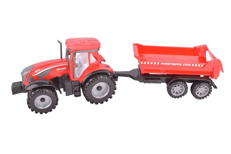 ¡La diversión en la granja nunca termina con este robusto tractor de juguete a fricción y su remolque volcador! Los niños podrán transportar "cosechas" y simular tareas agrícolas empujando el tractor para que avance. Un juguete ideal para fomentar el juego imaginativo y el interés por la vida en el campo.