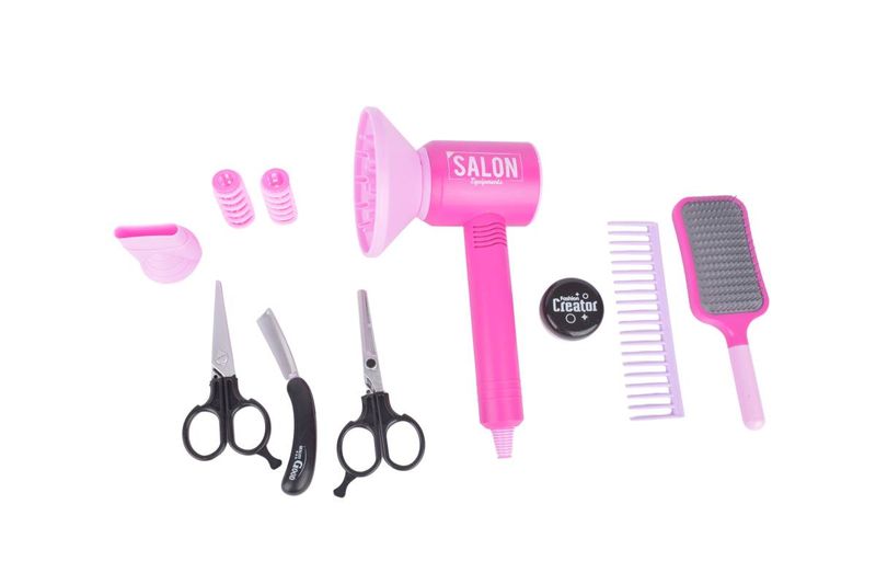 ¡Conviértete en la estilista más fashion del momento con el Set de Peluquería “Fashion Show” de Bunch Club! Este completo kit de belleza incluye todo lo necesario para simular un auténtico salón de belleza: secador de pelo, tijeras, peines, rulos, cepillo y más. Diseñado en atractivos colores rosa y lila, este set promueve el juego imaginativo, la creatividad y la diversión para niñas a partir de los 3 años.