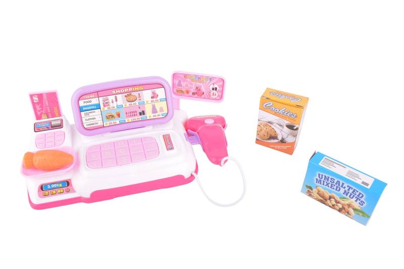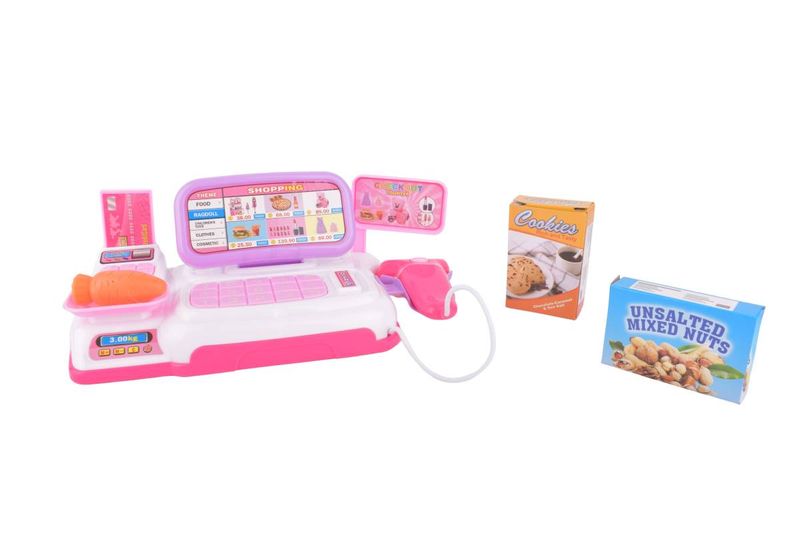 Caja registradora de juguete con pantalla, luces, sonidos y accesorios para jugar al supermercado. Estimula la creatividad y el aprendizaje desde los 3 años. Ideal para juegos de rol tipo supermercado: los niños pueden “cobrar”, escanear productos, simular pagos y aprender números de forma divertida.