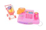 Caja registradora infantil con carrito, frutas y accesorios. Ideal para juegos de compras y roles educativos. Súper completa. Cómprala en Ferniplast.com.