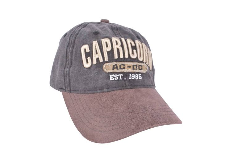 Luce un estilo retro y con actitud rockera con esta gorra vintage desgastada "Capricorn AC-DC Est. 1985". Con un bordado distintivo que evoca una estética musical de los 80, esta gorra ajustable es perfecta para un look casual con personalidad.