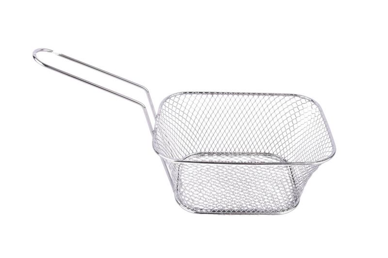 Prepara papas fritas y snacks crujientes con este canasto freidor individual de 14.5x10.5cm. Fabricado en acero inoxidable con malla fina y un práctico mango, es ideal para presentar porciones individuales o para usar como colador. Duradero y fácil de limpiar.