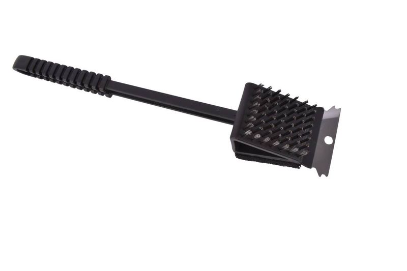 Mantén tu parrilla impecable con nuestro cepillo 3 en 1: raspador, cerdas metálicas y esponja para una limpieza profunda y eficiente.