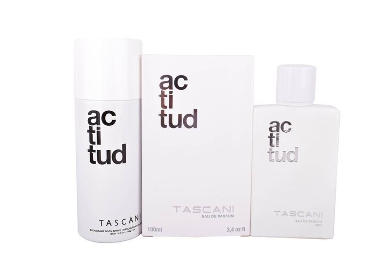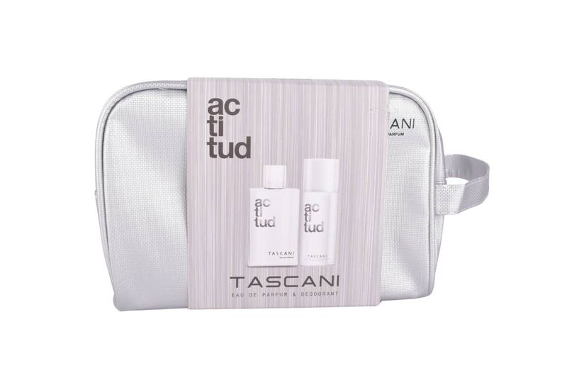 Regala o disfruta la fragancia masculina y enérgica de Tascani Actitud con este completo set. Incluye un Eau de Parfum de 60ml, un desodorante en spray de 150ml y un práctico neceser plateado para llevarlos contigo.