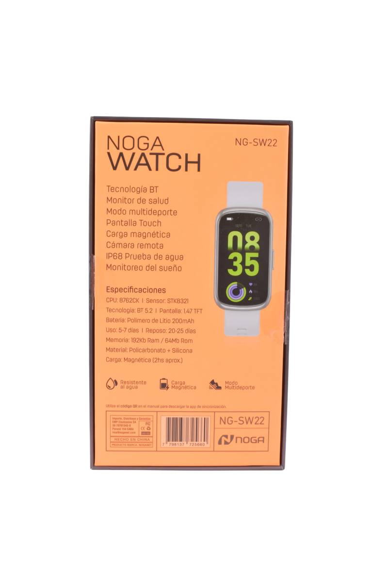 El Noga Watch NG-SW22 es un smartwatch inteligente con tecnología Bluetooth 5.2 que te permite monitorear tu salud, registrar tus actividades deportivas y mantenerte conectado. Con pantalla táctil, carga magnética y resistencia al agua IP68, es el compañero ideal para un estilo de vida activo y conectado.
