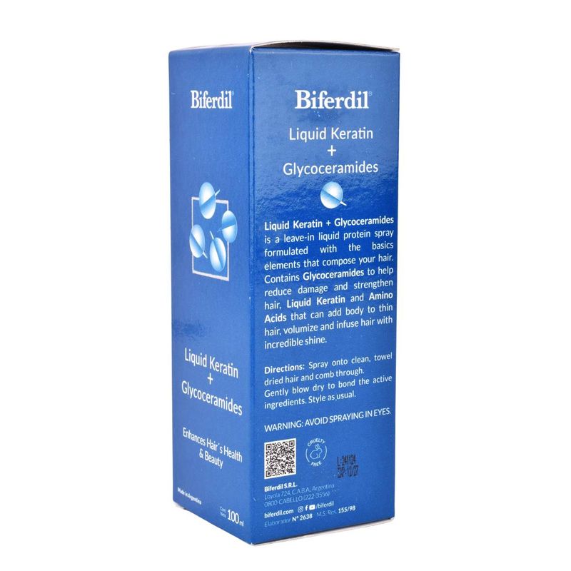 El tratamiento capilar Biferdil Keratina + Glycoceramida 100ml repara y fortalece el cabello, aportando nutrición, suavidad y brillo desde la primera aplicación
