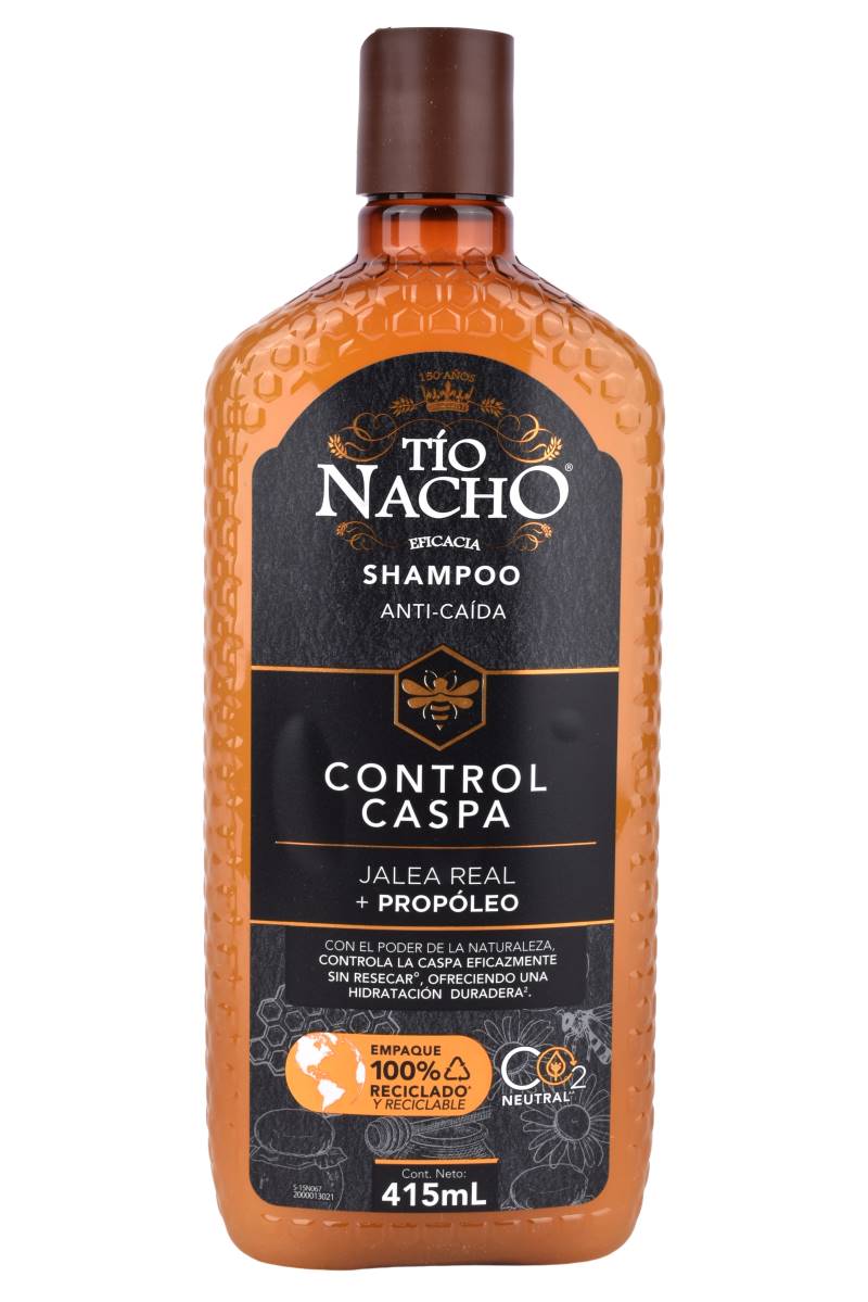 Shampoo Tío Nacho Control Caspa y Anti-Caída con Jalea Real y Propóleo. 415ml. Hidratación duradera sin resecar. ¡Cómpralo en Ferniplast.com!