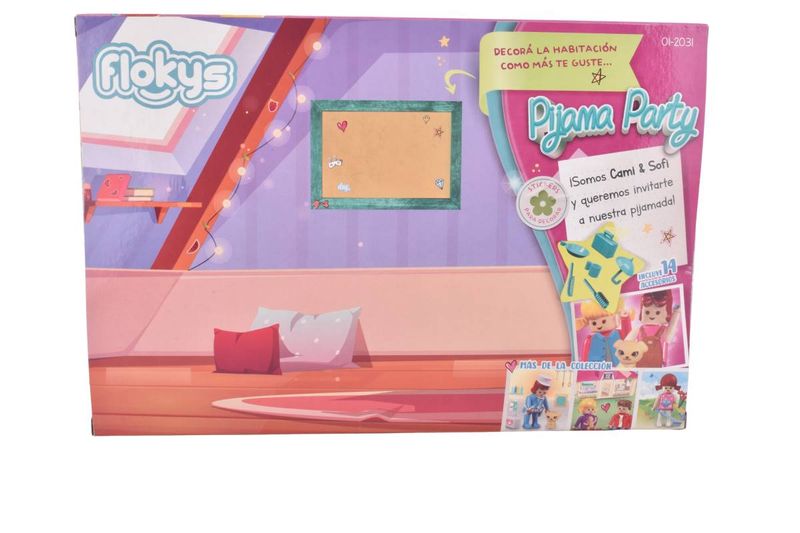 ¡La diversión y la amistad se viven al máximo con Flokys Pijama Party! Este encantador set incluye dos muñecas articuladas listas para disfrutar de una noche de juegos, risas y sueños. Viene con 14 accesorios ideales para recrear una verdadera fiesta de pijamas, además de stickers para decorar y personalizar el juego a tu manera. ¡Un set lleno de estilo, amistad y creatividad!
