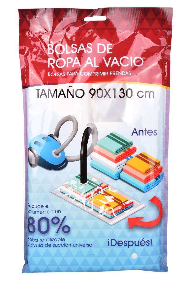 Maximiza tu espacio de almacenamiento con estas bolsas de ropa al vacío de 90x130cm. Ideales para comprimir prendas, reducen su volumen hasta en un 80%. Reutilizables y con válvula de succión universal para cualquier aspiradora.