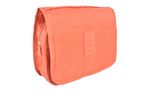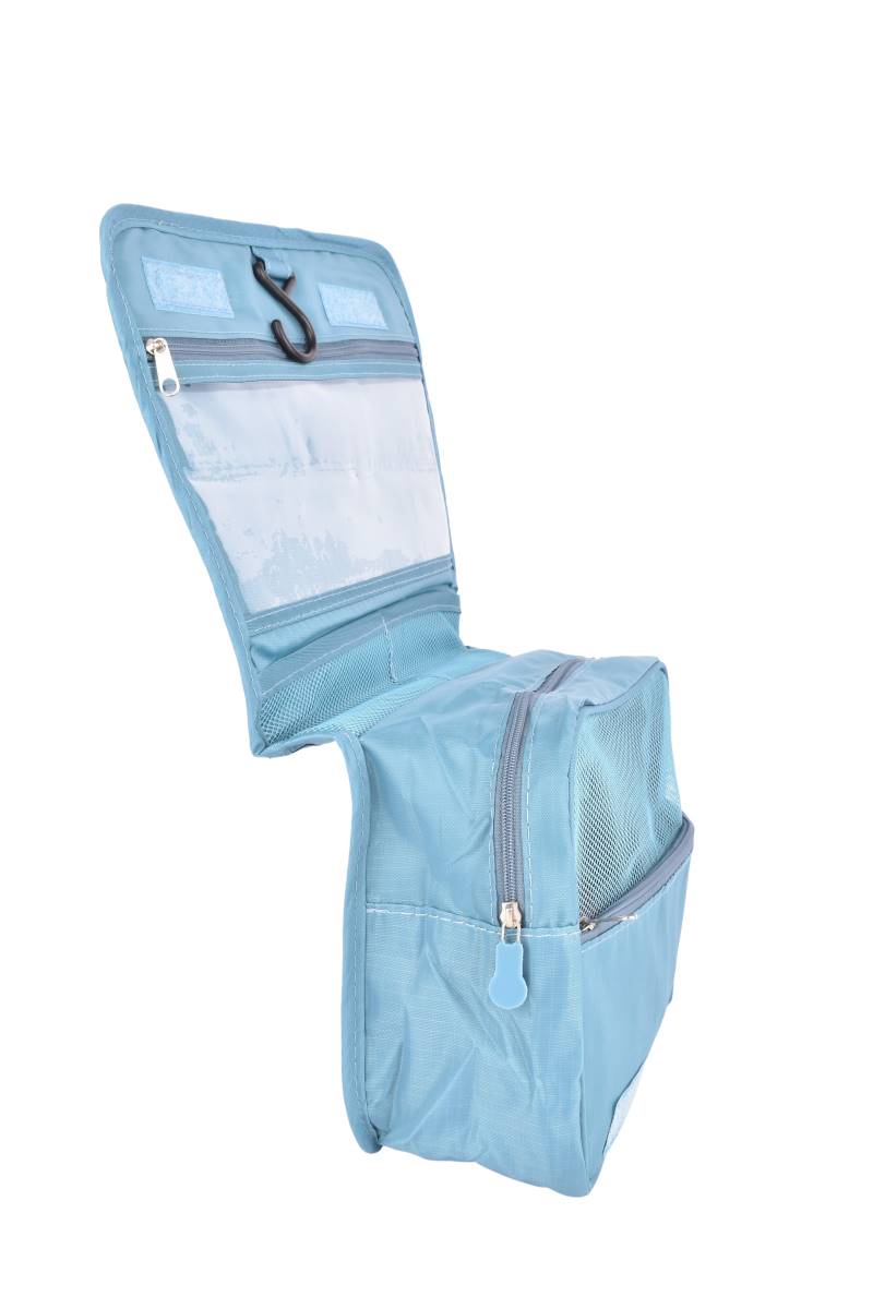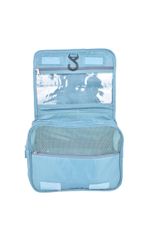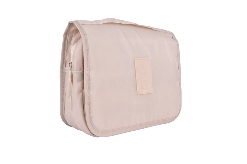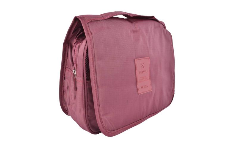 Organizador de viaje compacto y versátil, ideal para mantener tus artículos de tocador y cosméticos ordenados. Su diseño colgante con múltiples compartimentos y un gancho incorporado maximiza el espacio en cualquier baño o vestidor.