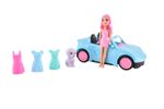 Descubre el set de Muñeca Luli Star con su auto convertible rosa, 3 vestidos y una adorable mascota. ¡Un look para cada aventura! Ideal para horas de juego imaginativo.