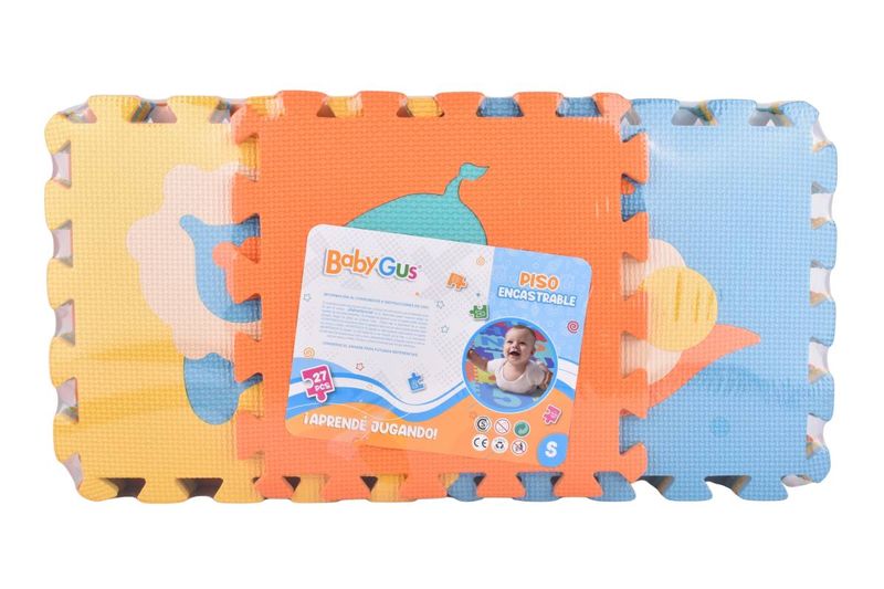 Piso encastrable Baby Gus de goma EVA con 27 piezas seguras y coloridas. Ideal para bebés y juegos. ¡Ármalo y cómpralo en Ferniplast.com!