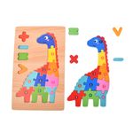 Juego de encastre de madera con temática de dinosaurios, ideal para que los niños desarrollen habilidades motrices y creatividad mientras se divierten. Perfecto para jugar solo o en grupo.