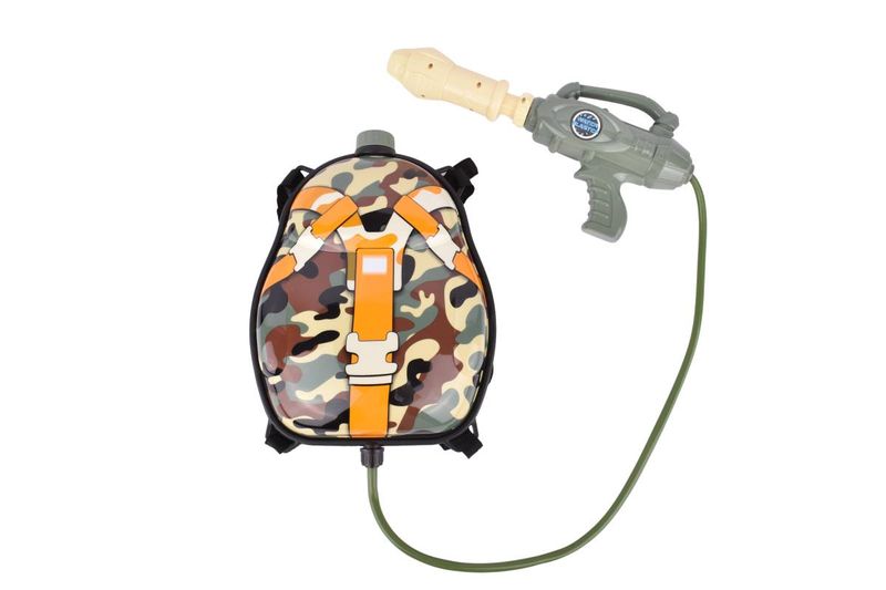 Pistola de agua con mochila camuflada 10x47x38 cm. Gran capacidad y alcance. Ideal para juegos de verano. ¡Encontrala en Ferniplast.com!