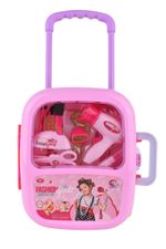 ¡Las pequeñas fashionistas adorarán este completo set de belleza Fashion Doll! Presentado en una práctica maleta con ruedas y asa extensible, incluye secador de pelo, peine, cepillo, espejo, tijeras de juguete, labial y más accesorios para horas de juego creativo y simulación de salón de belleza. Ideal para niñas a partir de 3 años.