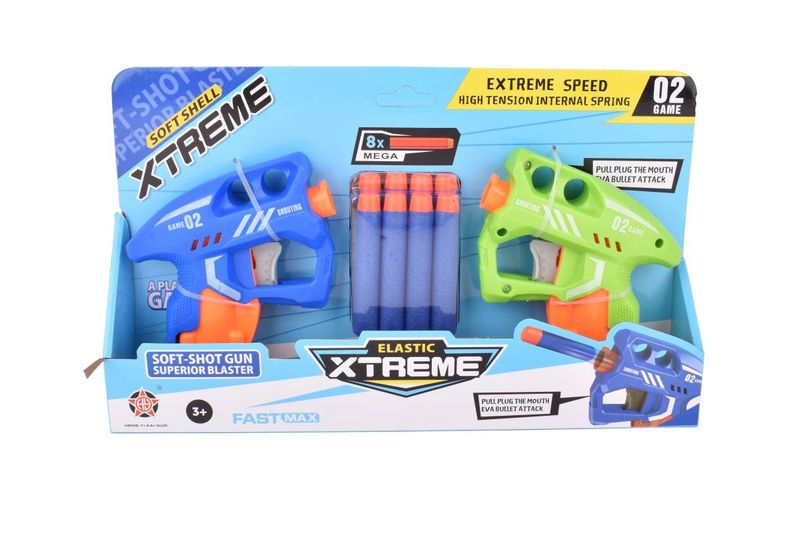 Set de 2 lanzadores X-Treme "Fast Max" (azul y verde) con 8 balas EVA Soft. Juguete de acción para niños +3 años.