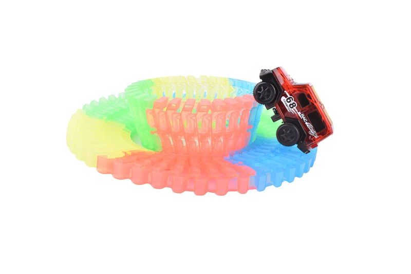 Pista flexible multicolor de 80 piezas con autito LED. Brilla en la oscuridad y ofrece horas de diversión. Ideal para regalar. Cómprala en Ferniplast.com.