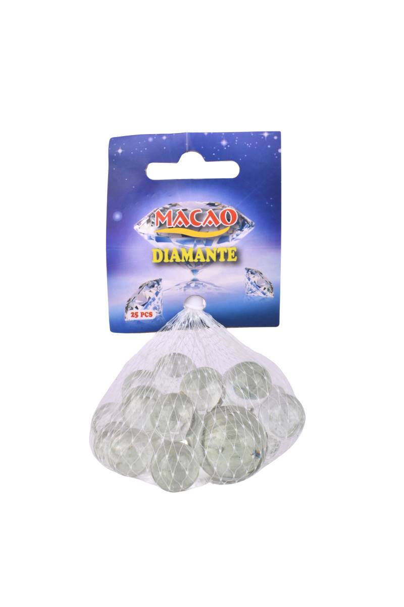 Descubre las Canicas Macao "Diamante" en red de 25 unidades. Con su diseño transparente y brillante, son ideales para jugar y coleccionar.
