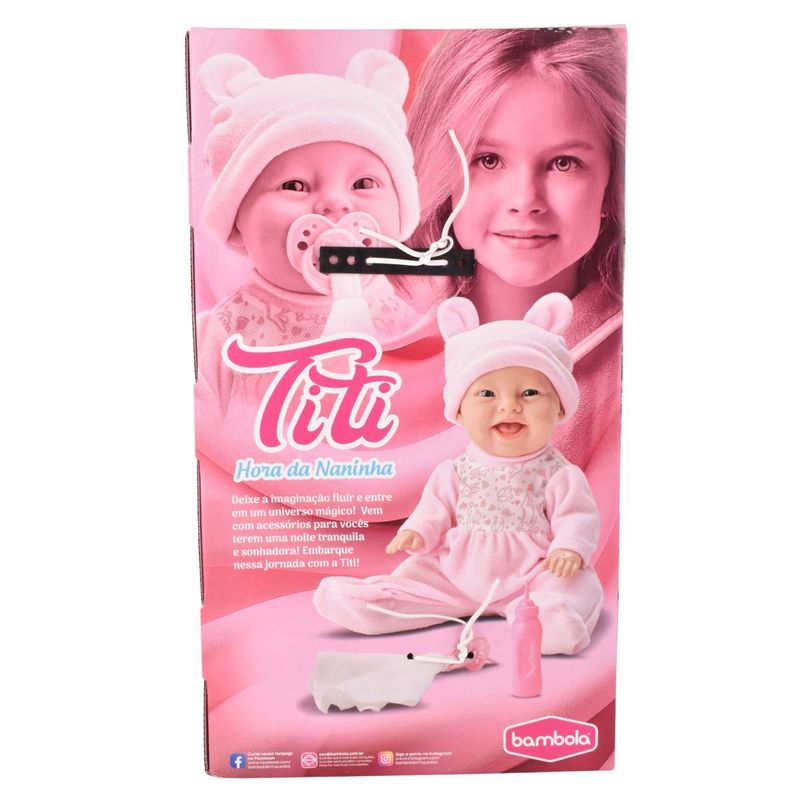 El compañero ideal para la hora de dormir. Este bebote Titi Hora de Naninha viene con accesorios para crear una rutina de sueño mágica y desarrollar el afecto en los niños.