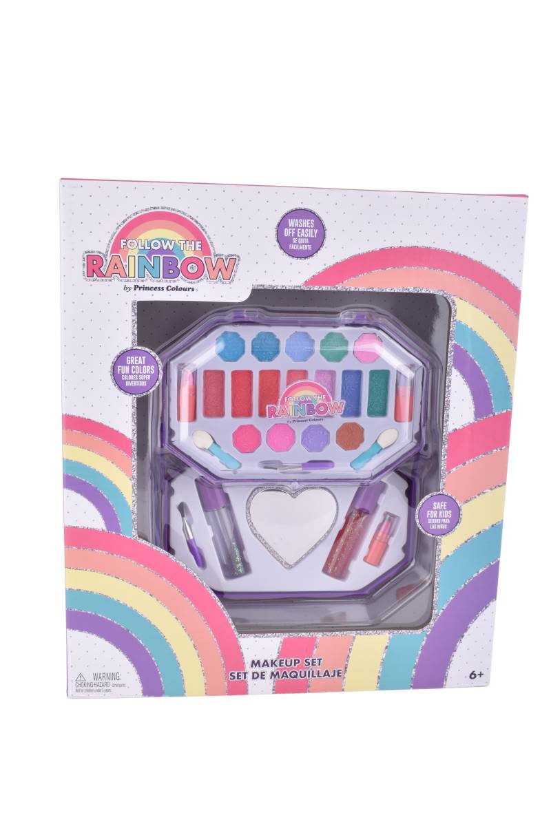Descubre el mágico Set de Maquillaje Follow The Rainbow para niñas de +6 años. Con 2 niveles de colores vibrantes y brillos, es lavable y seguro para la piel. ¡Fomenta la creatividad y la diversión!