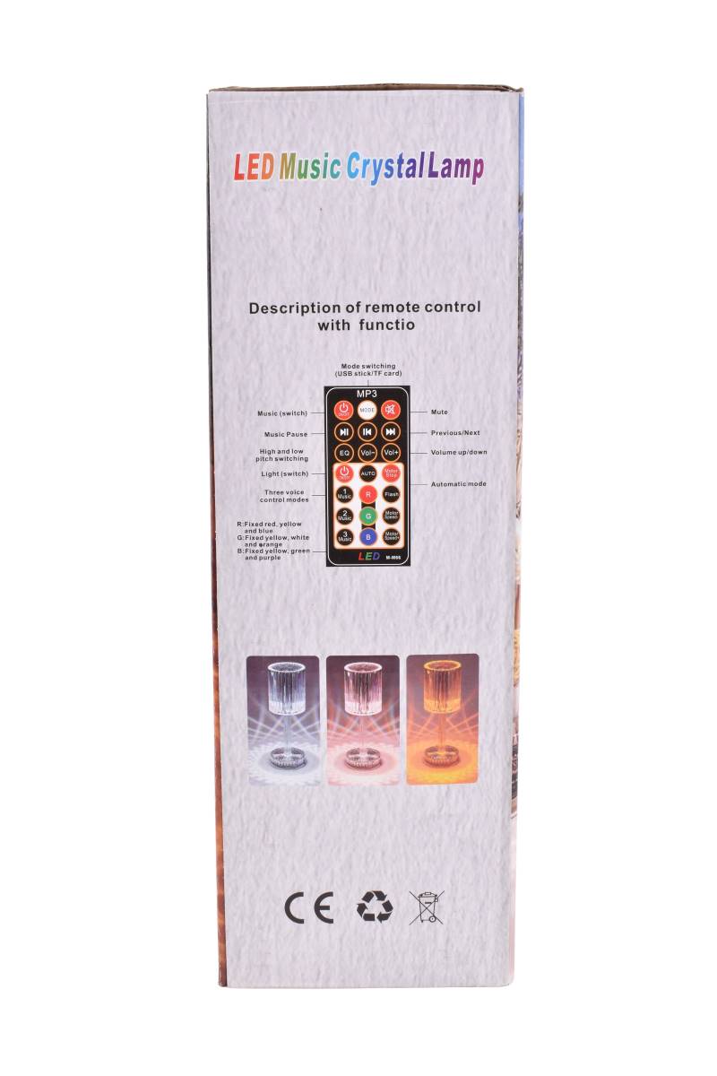 Iluminá tus espacios con estilo y tecnología con esta lámpara LED Music Crystal. Su diseño elegante tipo cristal se combina con efectos de luces RGB, altavoz Bluetooth integrado y control remoto para que puedas crear el ambiente perfecto en cualquier momento. Ideal para dormitorios, escritorios, eventos o como lámpara decorativa.