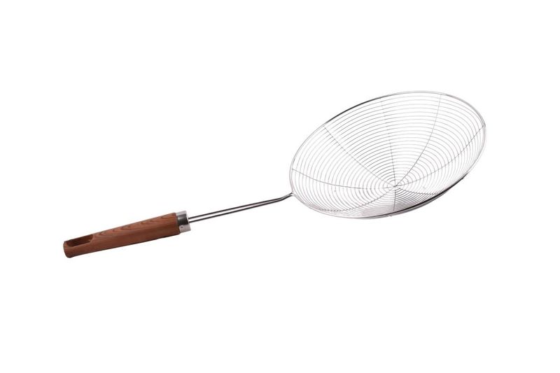 Descubre nuestro colador de cocina de acero inoxidable con malla fina y mango de 21.5cm. Perfecto para escurrir pastas, freír y filtrar líquidos.