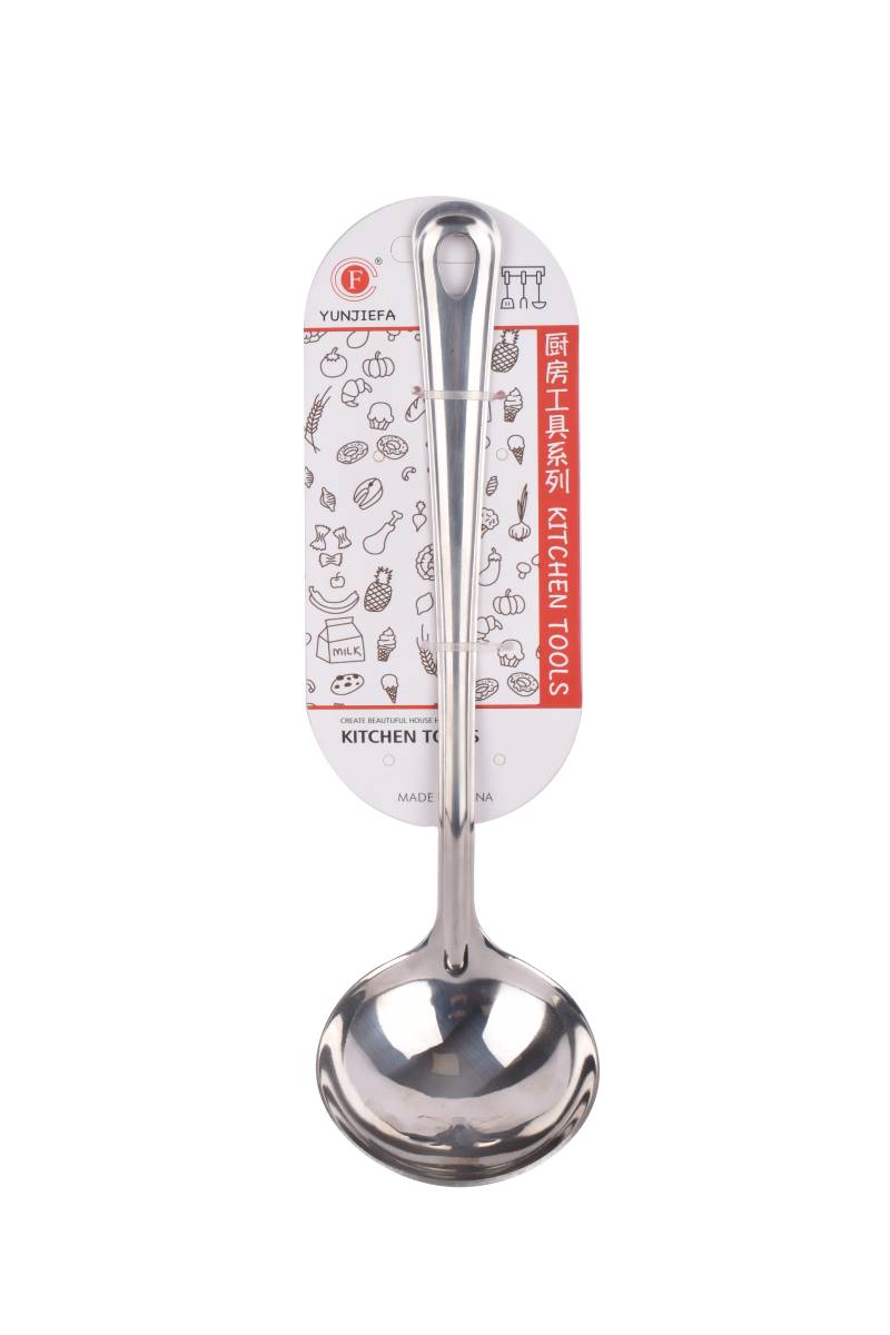 Descubre el cucharón YUNJIEFA de acero inoxidable. Diseño clásico y robusto, perfecto para servir sopas, guisos y salsas.