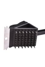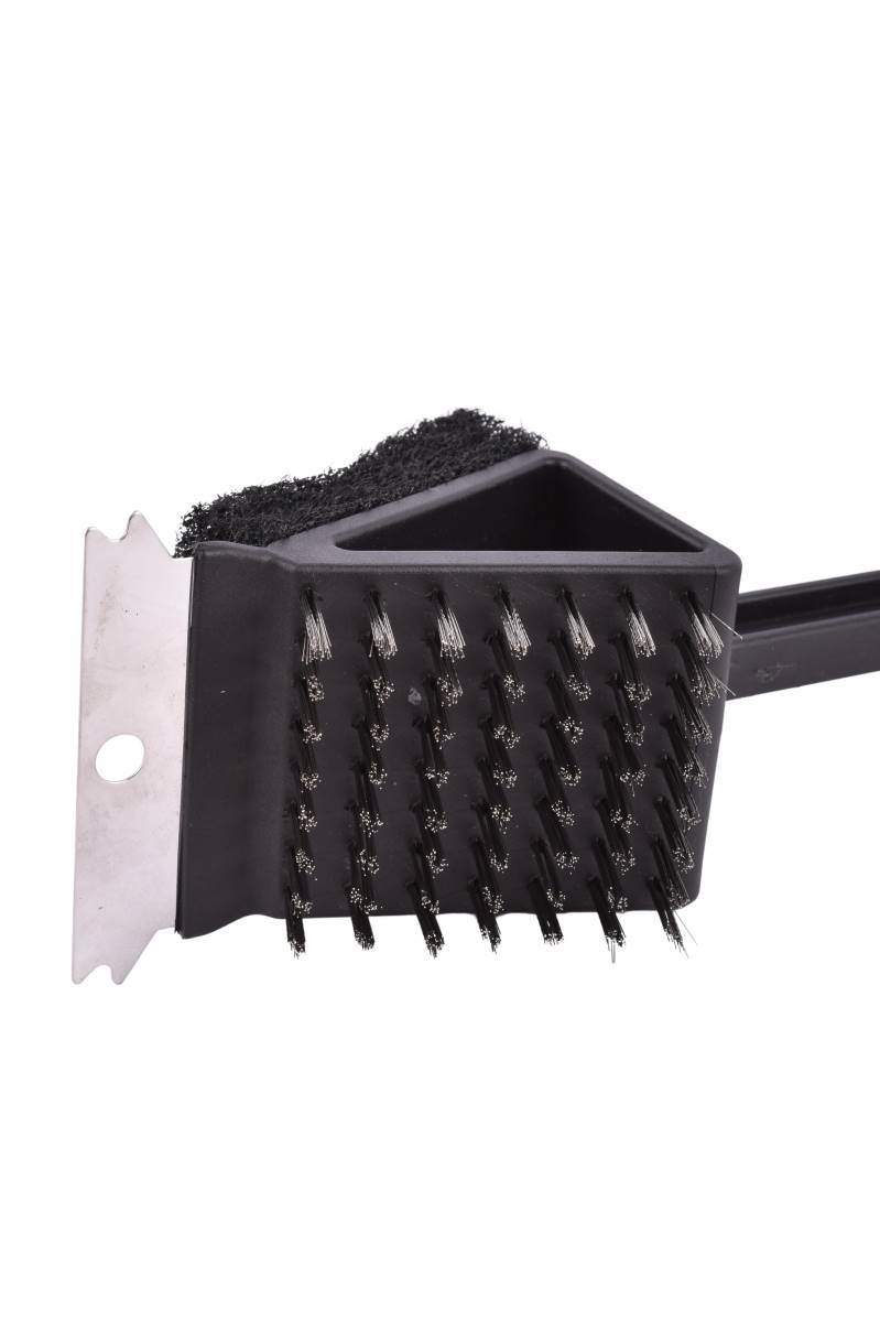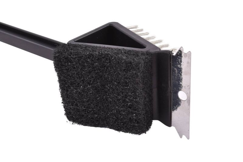 El cepillo limpia parrilla 3 usos de 37 cm es la herramienta perfecta para mantener tu parrilla siempre lista. Cuenta con cerdas metálicas para remover residuos, espátula para raspar y esponja para una limpieza más delicada, todo en un solo utensilio. Su diseño práctico y mango cómodo facilitan el uso.