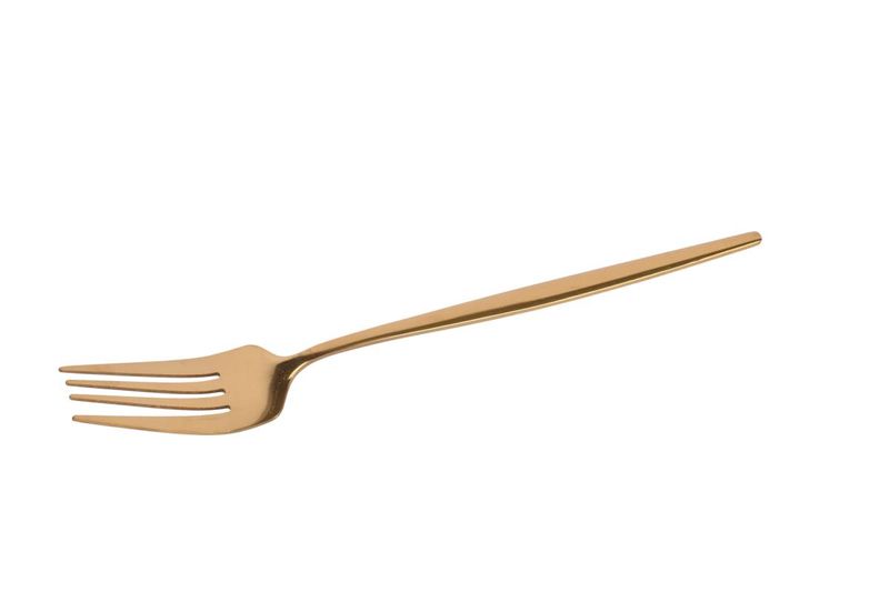 Tenedor de acero inoxidable con acabado dorado, ideal para realzar la presentación de la mesa en el uso diario o en ocasiones especiales. Apto para uso diario en comidas principales y también para mesas formales, eventos o celebraciones donde se busca una estética cuidada.