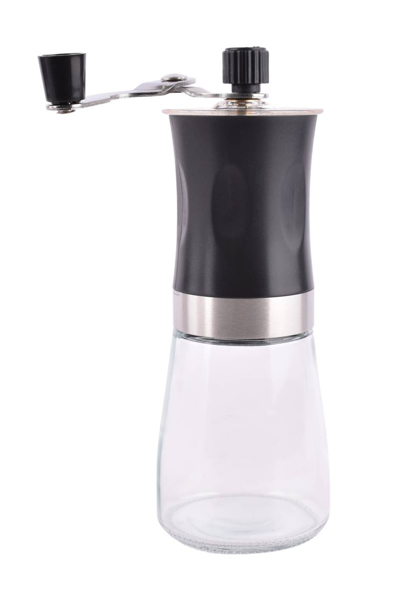 Molinillo de café manual 17,5 × 6,5 cm para moler café fresco con ajuste de molienda y base de vidrio. Ideal para uso diario. Cómpralo en Ferniplast.com.