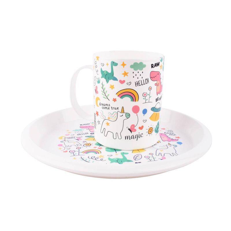 ¡Comer con estilo y diversión! Este set incluye un plato y una taza con tamaño ideal para niños, diseñados para facilitar la alimentación y acompañar a los pequeños en sus comidas diarias con seguridad y comodidad.