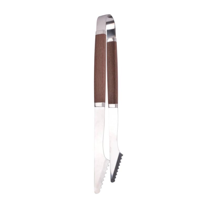 La pinza para asador con mango de madera es un clásico de todo parrillero. Su largo ideal te permite manipular alimentos en la parrilla con firmeza, comodidad y sin exponerte al calor.