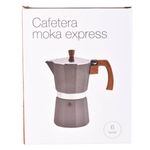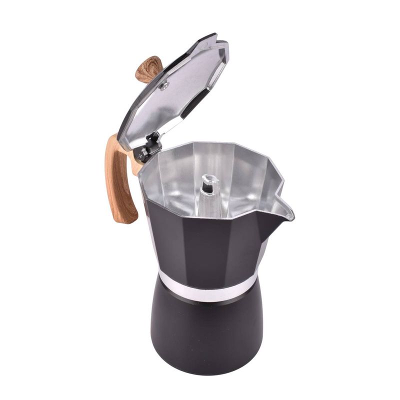 Disfruta del auténtico sabor del espresso italiano en casa con esta elegante Cafetera Moka de 6 tazas. Su diseño contemporáneo negro mate y mango simil madera la hacen un complemento ideal para tu cocina.