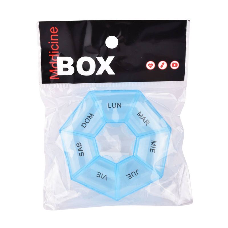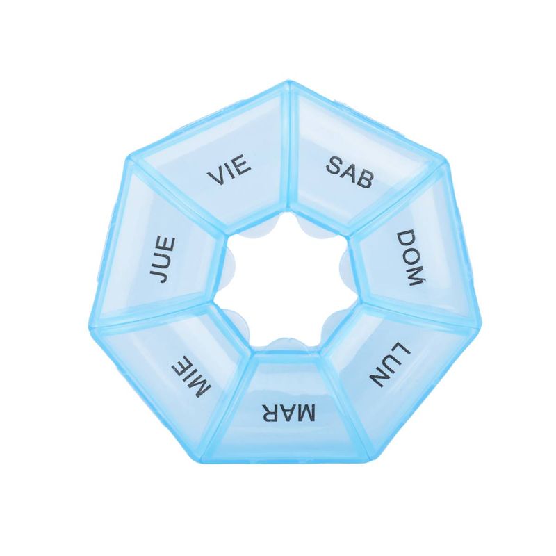 El Pastillero Semanal Circular con 7 Divisiones es práctico y compacto, ideal para organizar la medicación o suplementos de toda la semana.