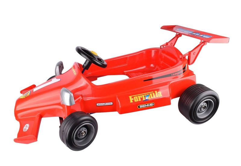 ¡Sentite un verdadero piloto de carreras! El auto a pedal Biemme Forzilla combina la emoción de la velocidad con el ejercicio físico en un diseño que imita a un verdadero monoplaza estilo Ferrari. Con volante funcional, gran alerón trasero y estructura resistente, este vehículo es ideal para que los más chicos vivan la adrenalina de la pista desde el jardín o la plaza. ¡Diversión activa garantizada!