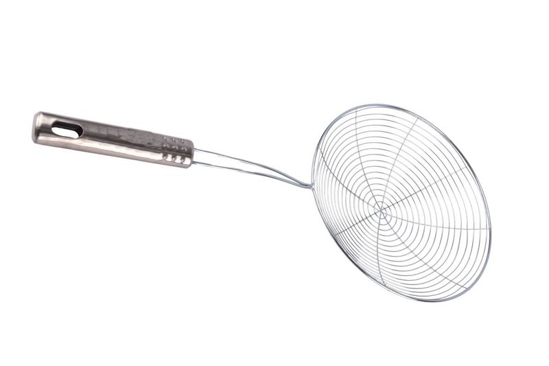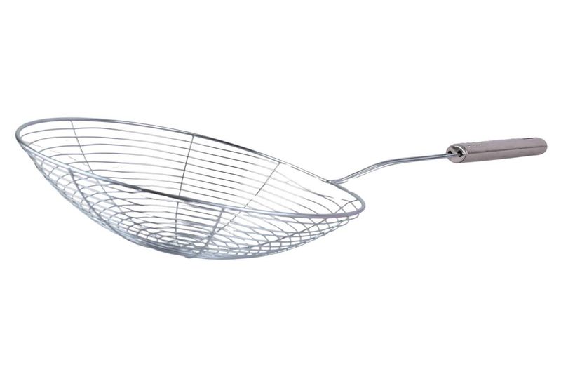 Herramienta perfecta para sacar papas fritas, verduras en tempura, buñuelos, pastas o dumplings directamente del aceite hirviendo o del agua de cocción. Permite escurrir el exceso de líquido o aceite al instante.