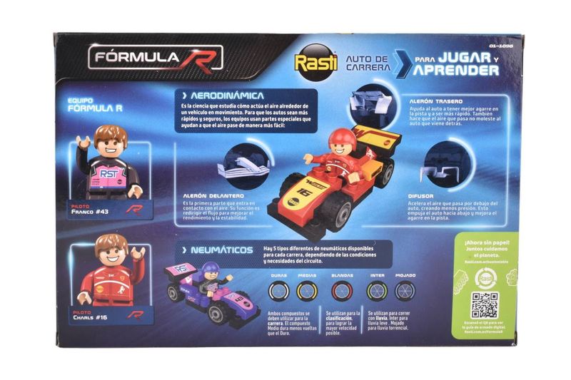 Desata la emoción de la velocidad y la ingeniería con el set Rasti Fórmula R. Arma dos vehículos de carrera aerodinámicos con 65 piezas, muñecos piloto y stickers para una experiencia de juego y aprendizaje inigualable.