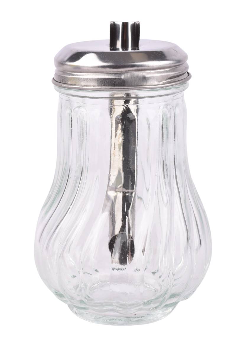Azucarera de vidrio con elegante pico metálico. Dosificación precisa para café y té. Diseño higiénico y moderno. Cómpralo en Ferniplast.com