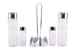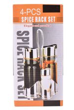 Set de 4 especieros de vidrio con tapa de metal, perfectos para mantener tus especias organizadas y a mano mientras cocinas. Su diseño transparente permite identificar fácilmente el contenido y sus tapas de metal aseguran un cierre seguro.
