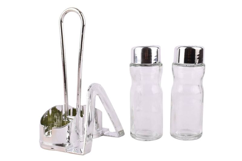 Set salero pimentero 2 pz de vidrio con tapa metálica. Ideal para sazonar tus comidas en la mesa o cocina. Cómpralo en Ferniplast.com