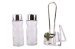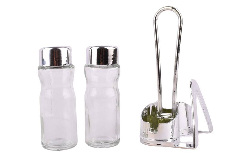 Mantén tus condimentos esenciales siempre a mano y frescos con este elegante set de salero y pimentero. Sus recipientes de vidrio y tapas metálicas dosificadoras son perfectos para la cocina y la mesa.